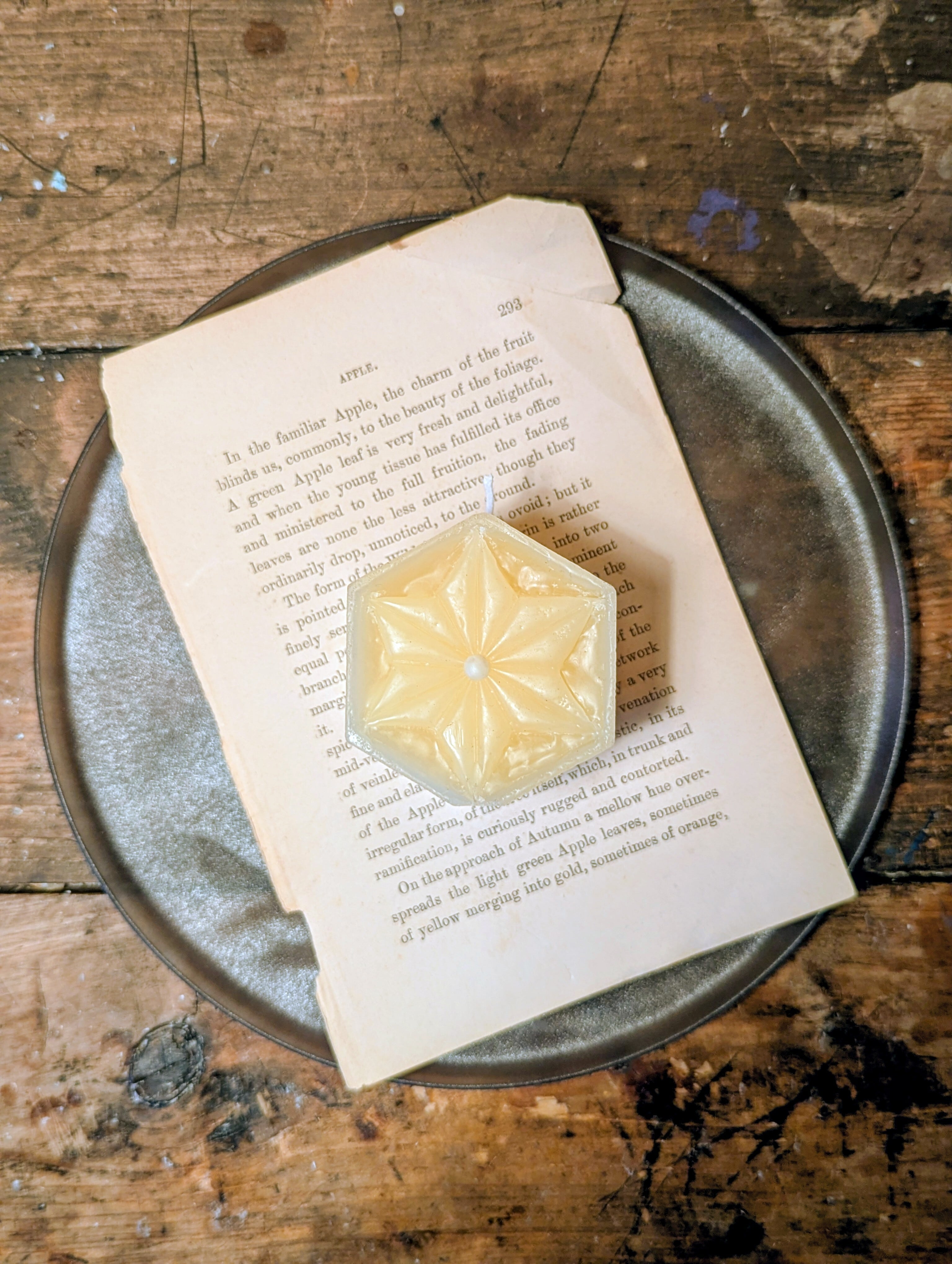 天然素材の蜜蝋を使用し、日本伝統和柄の麻の葉模樣を浮かし彫りした作品です。