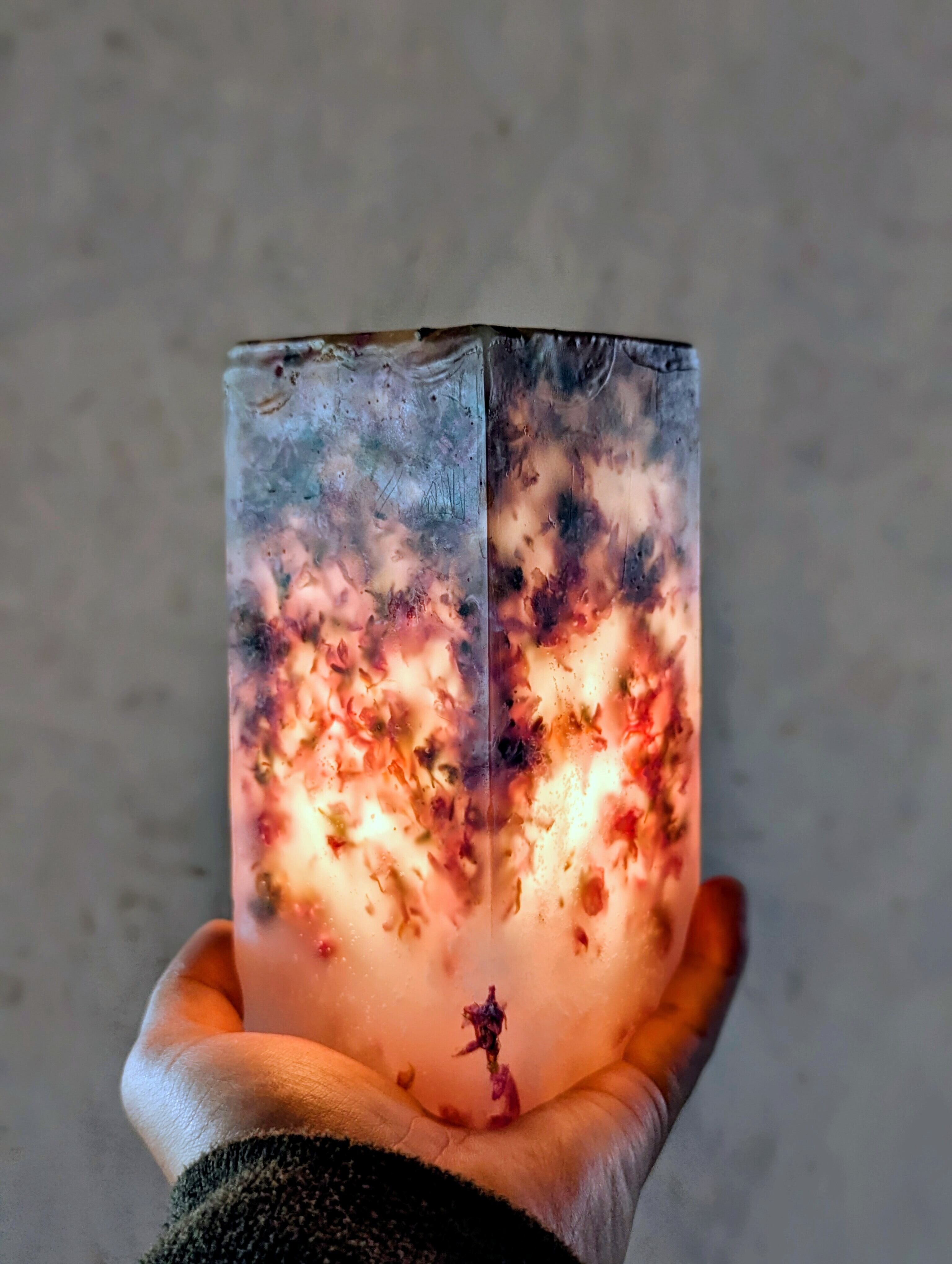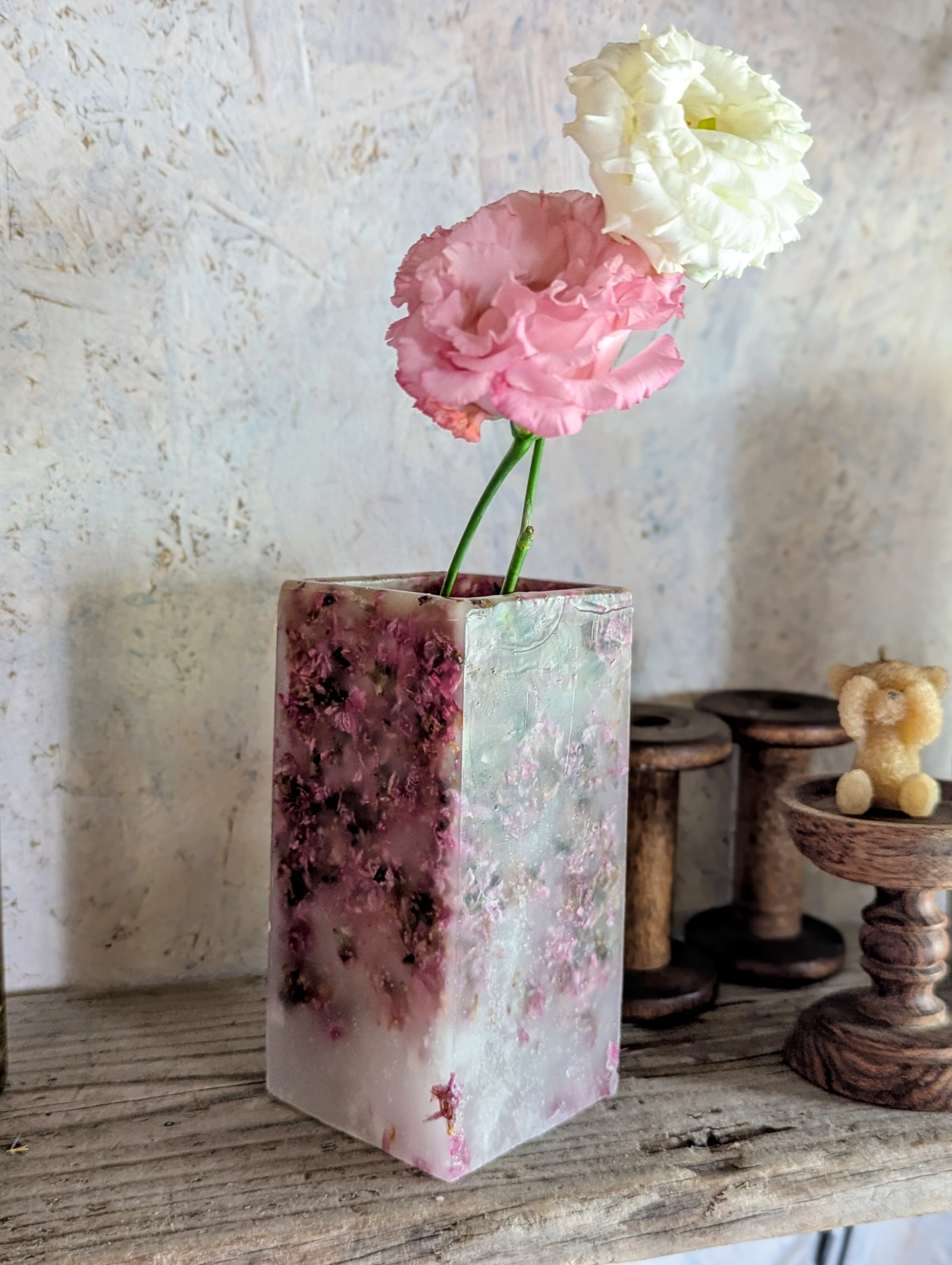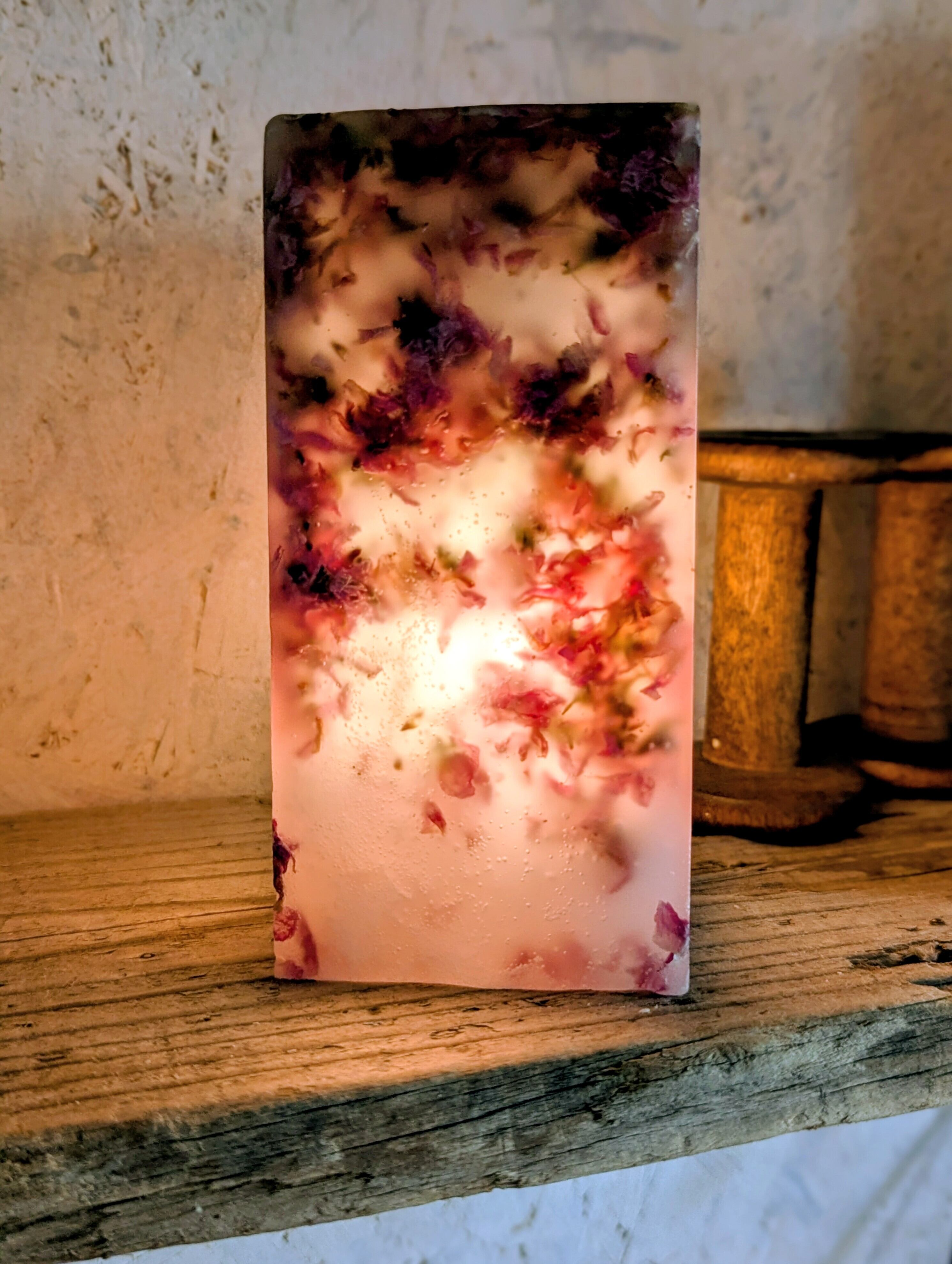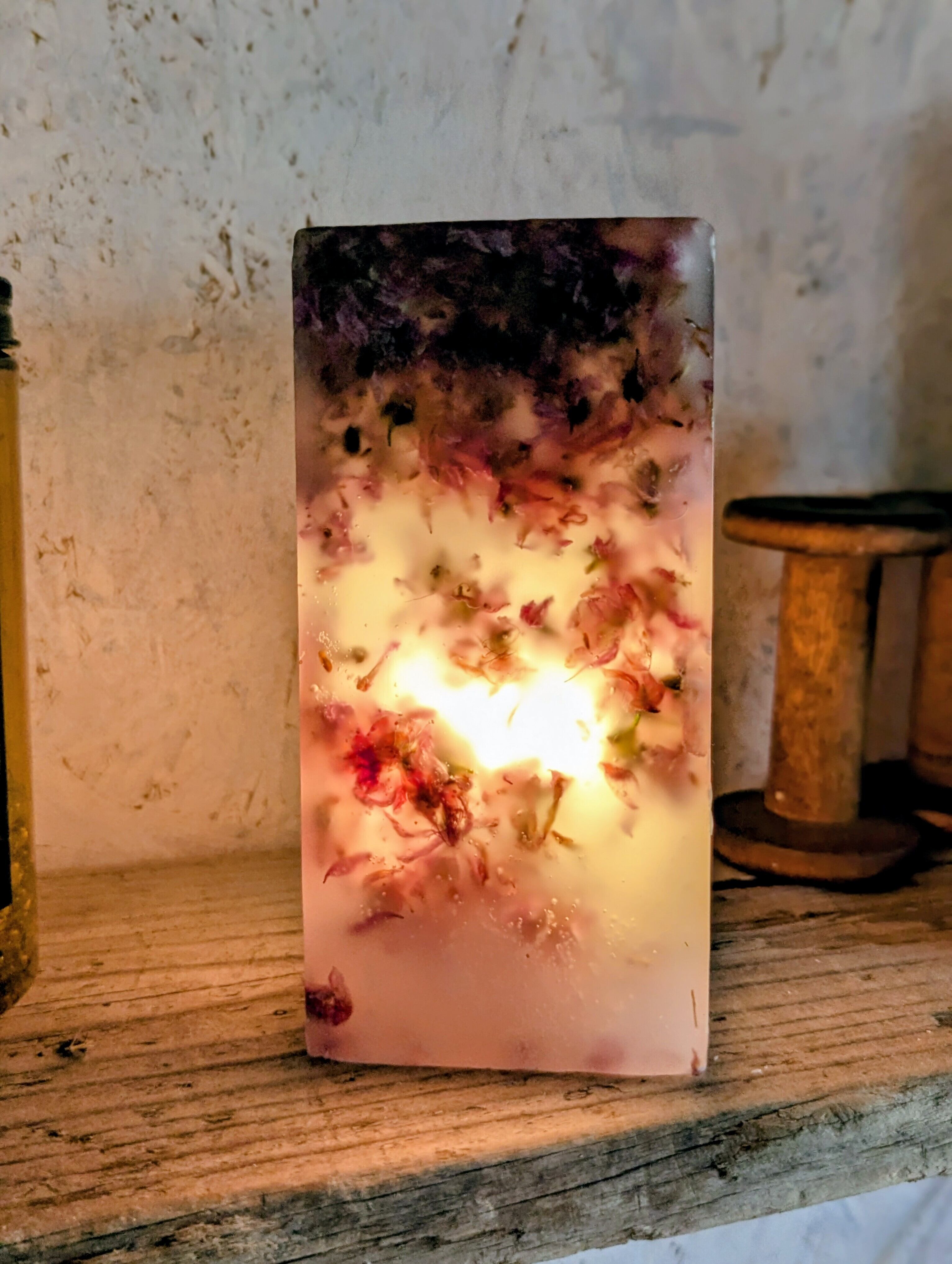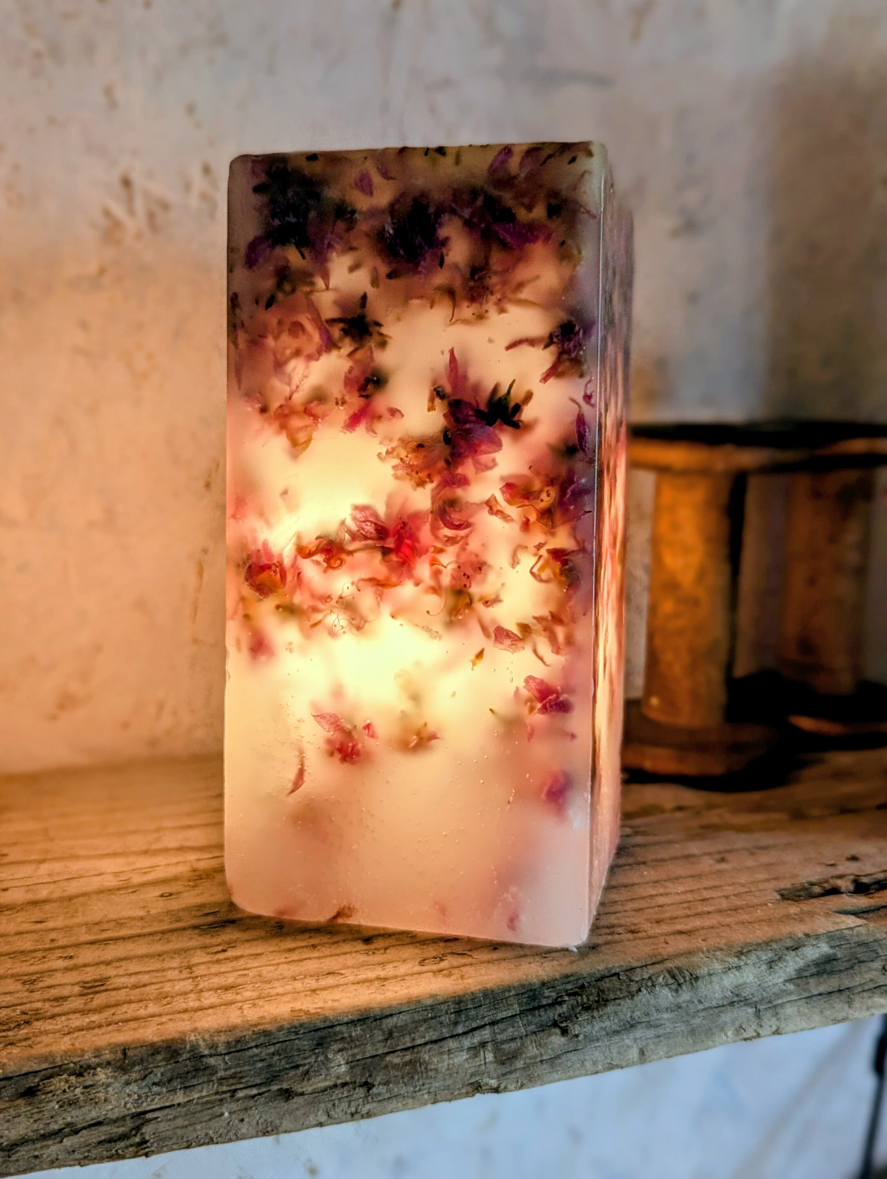 桜によく似た花桃のお花をふんだんに蝋に閉じ込めたピンクが可愛らしいボタニカルボックスとなります。